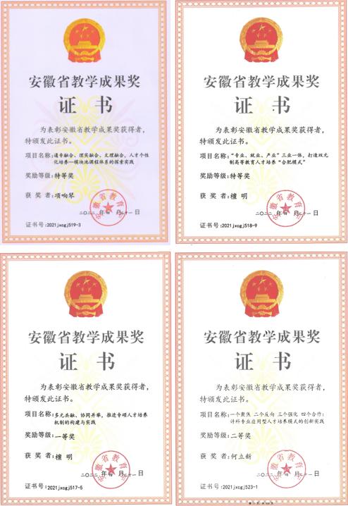 积极深化课程教学改革,加强教学资源建设。完成上线课程8门,1门课程被认定为“国家级一流本科课程”。指导学生加入科研项目团队,参加专业学科竞赛,在项目的研发中锻炼和培养学生。2021-2023年获得国际级奖项9项、国家级奖项69项、省级奖项313项;获批大学生创新创业项目185项,其中国家级31项。支部获得安徽省教学成果奖特等奖3项、一等奖2项、二等奖2项,校级一等奖3项。