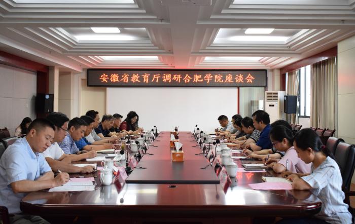 7月2日,安徽省教育厅副厅长储常连携高教处处长梁祥君、外事处处长丁育红一行来我校调研。合肥学院党委书记蔡敬民、校长王其东于行政楼九楼东会议室热情会见来宾。校党委委员、计划财务处处长何世昆,党政办主任白义香,教务处处长王晓峰,发展规划处处长缪群,人事处处长陈爱娟,国际交流合作处处长贾峰,科技处副处长汪潘义,服务地方办公室副主任华建兵等陪同调研。
