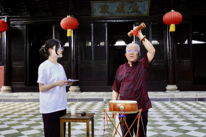 在唐山镇,团队寻访了紫金制作工艺省级非遗传承人邱金保,通过访谈,全面了解了紫金砚制作的复杂工艺,深刻体会到这一传统技艺背后的历史积淀。在寿县老文化馆,团队专访了寿州大鼓省级非遗传承人魏明华与口技快板非遗传承人李勋,两位老师以精彩纷呈的表演,充分展现了寿县传统曲艺的独特魅力。然而,团队成员也了解到,非遗传承正面临着人才短缺、后继乏力等严峻形势,这引发了他们对传统文化保护与传承的深刻思考。
