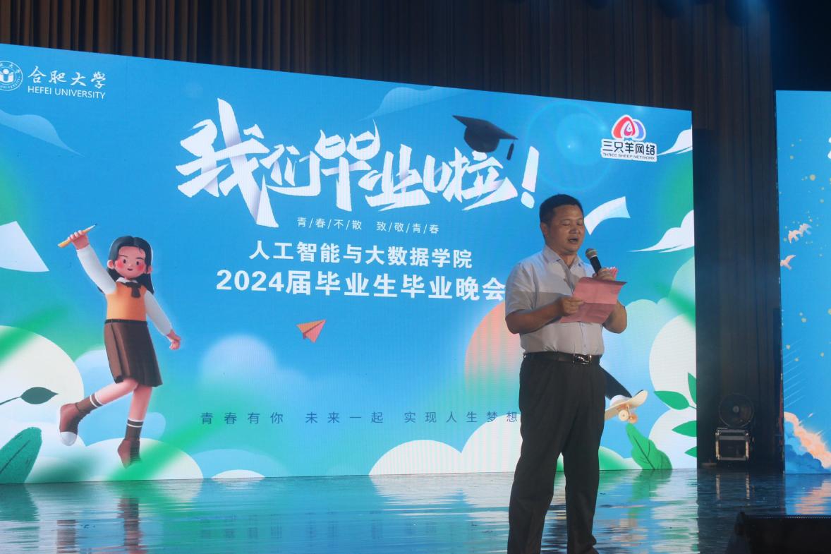 晚会以“韶华”、“经年”、“远方”三大篇章为主线,串联起毕业生们四年的青春记忆与对未来的美好憧憬。开篇的龙狮表演《狮武华章》与开场舞《啦啦操》迅速点燃了现场氛围,展现出年轻一代的蓬勃朝气。院长余海峰教授致辞,他代表学院向即将步入新的人生旅程的毕业生们表示最热烈的祝贺,从“保持好奇心、学会合作、勇于实践、用技术做善事、维持平衡”五个方面提出期许,祝愿毕业生们未来一切顺利,不仅“程序”无bug,生活也能行云流水!
