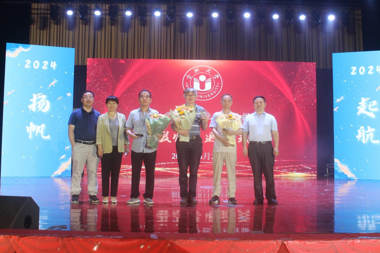 紧接着,“经年”篇章带领大家回顾了那些与学校、老师和同学们共同度过的美好时光。歌曲《手写的从前》、朗诵《彼方尚有荣光》等节目缓缓拉开了教师荣退仪式,书记牛欣、院长余海峰、副院长陈圣兵为退休教师张家锐、刘寿春、陈效军颁发纪念章,牛欣书记为我们重新“备份”了三位退休教师的“数据集”,娓娓道来每一位老师孜孜不倦、默默奉献的治学精神,她表示老教师们不仅传授了知识,更传递了责任、激情和爱心,在教育教学、科研创新、社会服务等方面所做出的贡献,已经深深地烙印在学院的成长史上,也将永远铭记在学生们的心中。随后张家锐老师用一首诗词《感遇》送别毕业生,字里行间无不彰显了教育工作者们的无私奉献以及对学子们的深深期许,将晚会推向了又一波高潮。