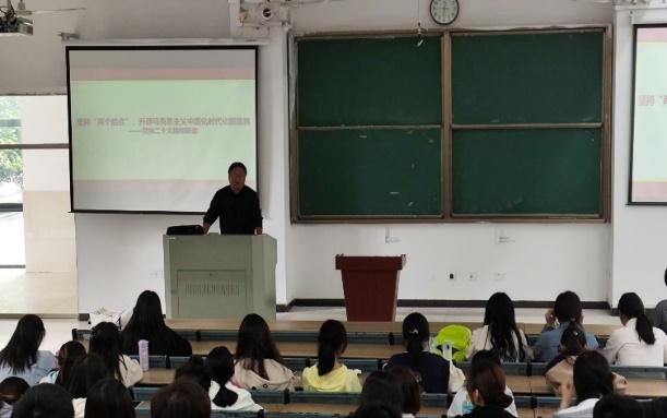 本次党课由校宣传部部长贾峰老师主讲,以“坚持‘两个结合’” —党的二十大精神解读”为主题。通过专题演讲、案例分析、互动交流等多种形式全面系统地学习了意识形态工作是为国家立心为民族立魂的工作、深刻认识意识形态工作的重要性、党的二十大关于意识形态工作的战略部署、建设具有强大凝聚力和引领力的社会主义意识形态等内容。