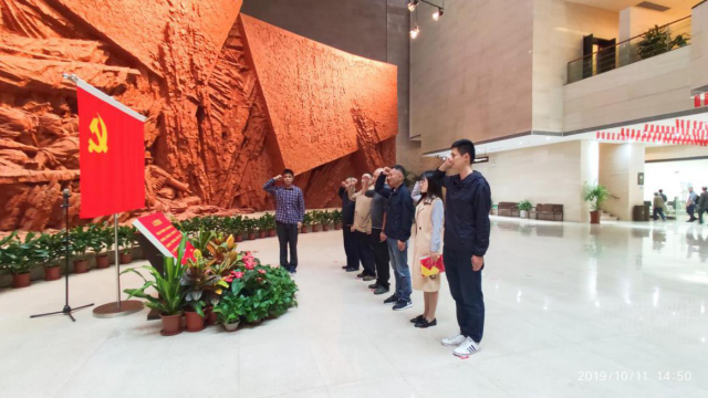 为庆祝中华人民共和国成立70周年,1011日下午,人武部、保卫处党支部赴渡江战役纪念馆,缅怀中国共产党领导人民夺取胜利的光辉历史,重温入党誓词,接受革命传统教育。