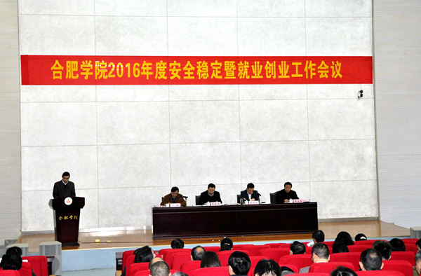 3月30日下午,我校2016年度就业创业工作会议在图书馆学术报告厅B顺利举行。校党委书记蔡敬民,校党委副书记、校长张文兵,校党委副书记丁明及校督导员郑永红出席会议。校全体中层干部、平台负责人及各系部学工办主任、辅导员到场参会。会议由张文兵主持。