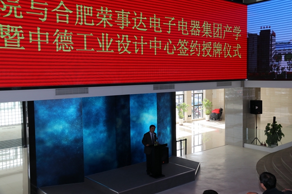 3月31日下午,合肥学院与荣事达电子电器集团“产学研基地暨中德工业设计中心”签约授牌仪式在荣事达电子电器集团举行。出席本次活动的有荣事达电子电器集团潘保春董事长、合肥学院艺术设计系主任谢海涛教授、长丰县石磊副县长,以及企业其他领导、员工和学校师生。活动在热烈的气氛中有序进行,荣事达电子电器集团郑德国副总裁主持本次活动。