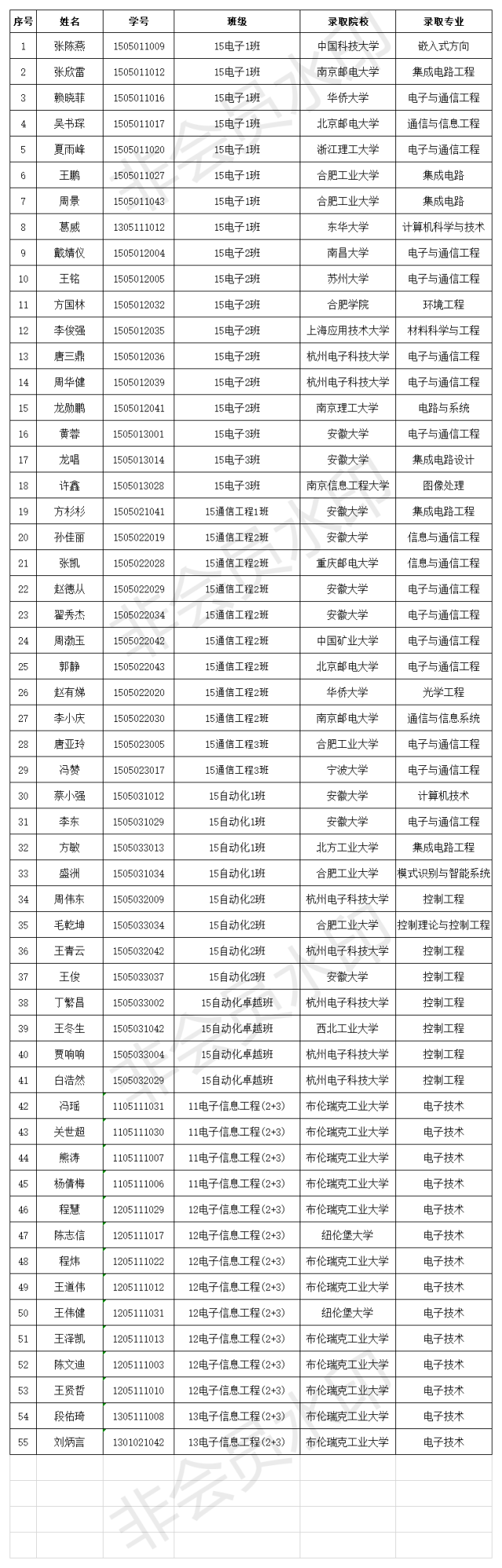 电子系2019届毕业生考研情况