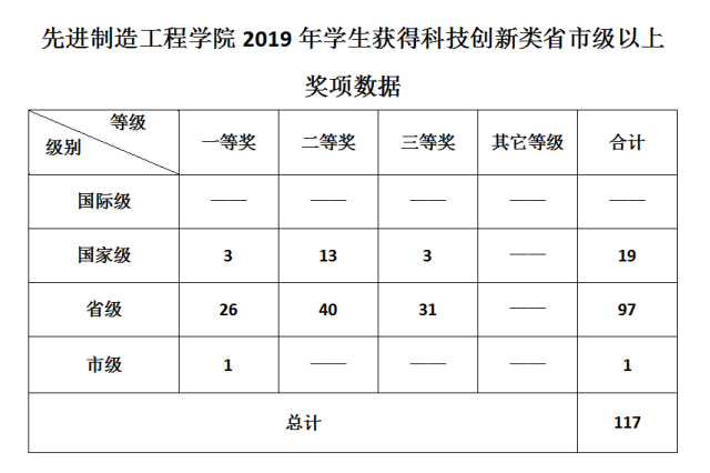 先进制造工程学院2019年学生获得科技创新类省市级以上奖项数据