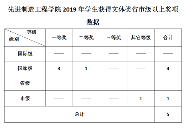 先进制造工程学院2019年学生获得文体类省市级以上奖项数据