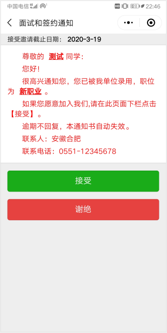 第五步、毕业生收到签约通知,并选择是否接受面试邀请。