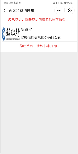 签约成功后,签约状态为“签约成功,待学校审核”,就业协议书不能打印。