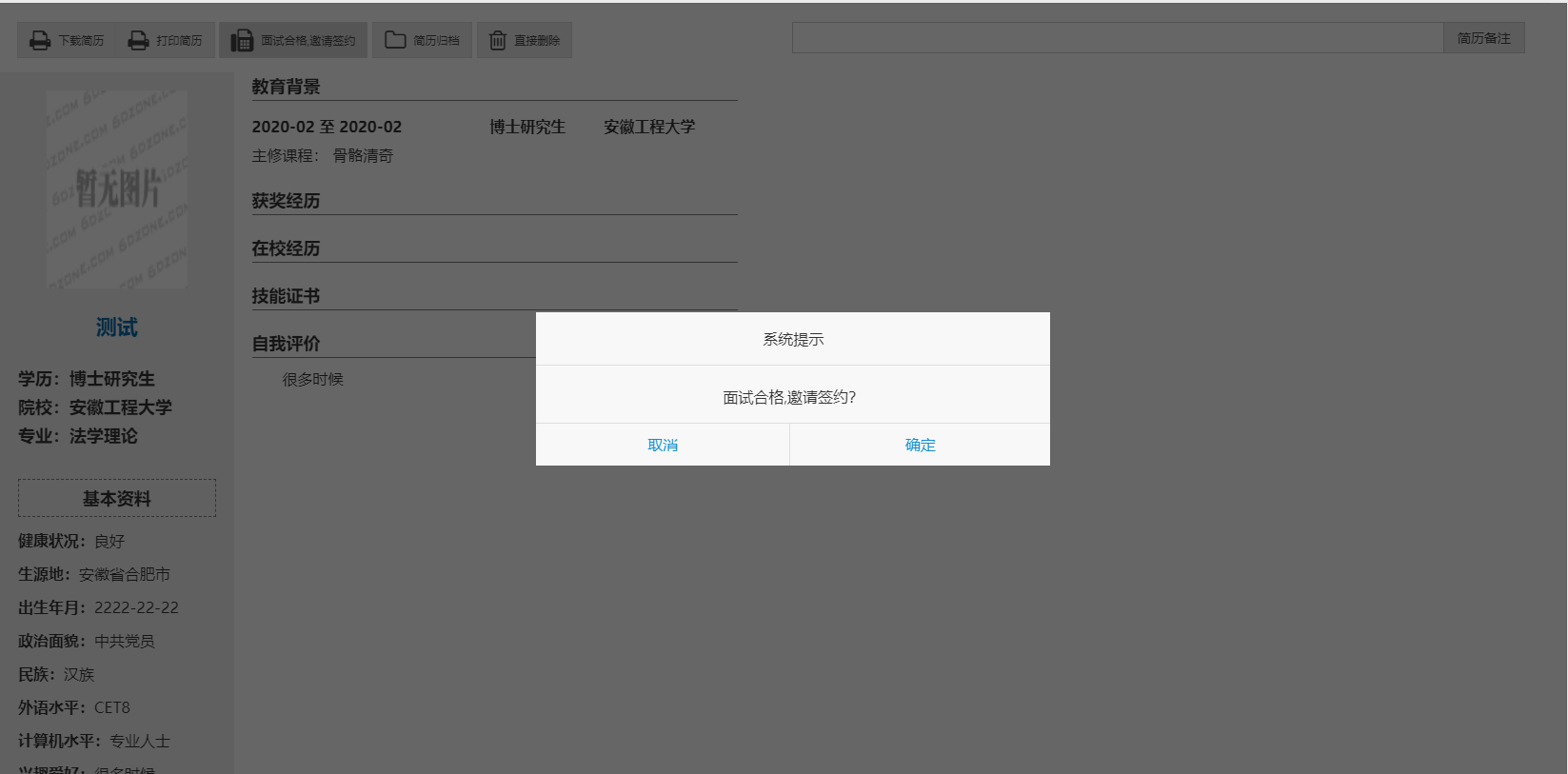 第二步、用人单位登录校招平台,查看简历,向意向毕业生发送面试邀请。