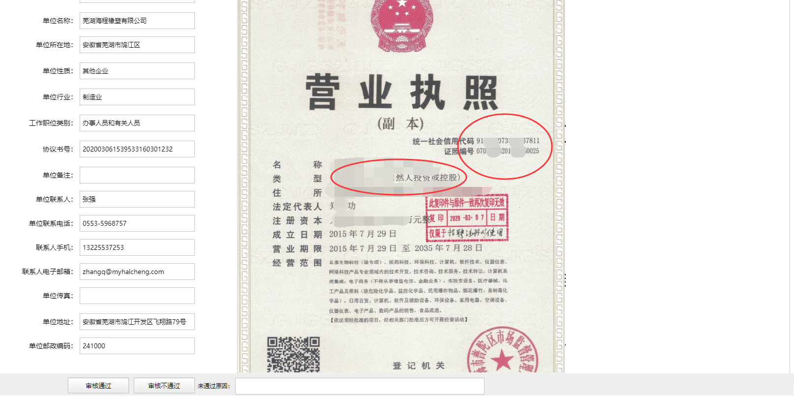 第三步、选择审核意见,不通过需要填写原因