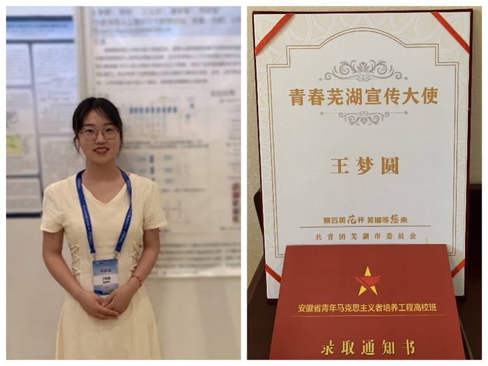 作为校研究生会主席,她努力发挥研究生会联系学生的桥梁纽带作用,组织了一系列有意义的活动,如羽毛球比赛、主题团日活动和学术讲座等,丰富了广大研究生的校园生活。2023年9月,王梦圆作为我校学生代表参加安徽省“青马工程”高校班,并获得了“青春芜湖宣传大使”的荣誉称号。她表示,未来将会继续用行动践行志愿服务精神,在学思践悟中牢记初心使命,在信照笃行中不断修炼自我,在知行合一中主动担当作为,做好新时代的接班人,以务实为底色,在脚踏实地中追寻初心!