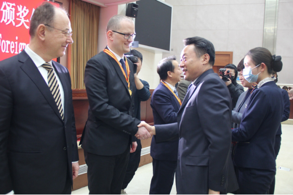 On the morning of December 16, 2020, Hefei Municipal Government holds a ceremony of the Third Hefei Friendship Award for foreign experts in Hefei. Yu Aihua, Secretary of Hefei Municipal Party Committee, and Ling Yun, Mayor of Hefei, award medals and honorary certificates to those experts. Prof. Dr. Thomas Weise, a German professor of Hefei University, is awarded the Hefei Friendship Award.