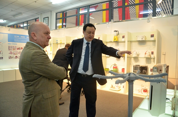 格龙德一行首先来到图书馆,在图书馆大厅观看了学校介绍以及2015年中德两国总理到访合肥学院的视频。视频展现了我校在中德教育合作示范基地建设方面取得的重大成果,见证了中德双方的友好交往。在观看完视频之后,双方共同参观了中德共建三十周年成果展。在参观中,蔡敬民从合肥学院发展状况、国际化合作及中德合作专业学术交流等方面介绍了我校的整体情况,并从中外师生交流、文化交流、科研合作、专业共建等多类合作项目方面介绍了开展情况。他表示,合肥学院坚持中外合作的办学理念,借鉴德国人才培养模式,不断完善中德教育合作示范基地建设,取得了一系列显著成效。格龙德对合肥学院的发展态势表示赞赏,对学校在发挥中德高校合作共建方面起到的引领示范效果表示肯定。本次来访有利于我校深入开展对德合作交流,促进我校教育水平的不断发展进步。