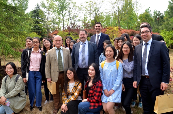 会后,格龙德与我校德语专业师生进行了热切交谈。宾主一行在我校二期校区共同种下了象征两国友谊的常青树,并在树前合影留念。