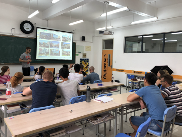 据悉,在我校国际交流合作处的支持与协调下,自2016年我校与德国埃姆登/里尔应用科学大学、德国大陆马牌轮胎公司共同开设“大陆班”,设置双元制高等教育模式的机械设计制造及其自动化专业以来,每个暑期都安排大陆班学生与德国留学生进行语言及文化交流。2017年暑期,首届大陆班学生与来自德国的5名留学生进行了交流,彼此之间建立了深厚的友谊。今年活动在国际交流合作处、教务处和机械系的共同努力下,进一步丰富了活动内容,拓宽了交流渠道,优化了交流形式,翻开了“交流过动”活动的新篇章。