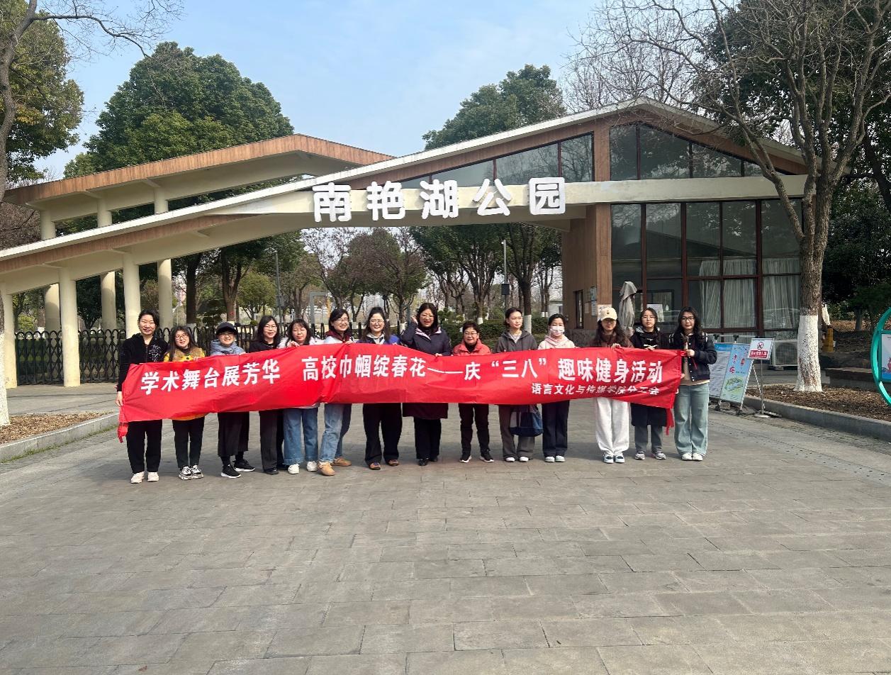 为庆祝“三八”国际妇女节,丰富女教职工的业余生活,语言文化与传媒学院分工会于2025年3月7日下午在南艳湖公园举办了一场别开生面的趣味健身活动。本次活动吸引了众多女教职工踊跃参与,现场气氛热烈,欢声笑语不断。