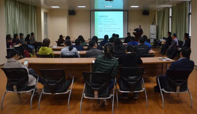 随后徐农博士作了以《浅谈加拿大高校化学化工实验室安全教育及制度》为题的报告,从不同层面简要介绍了加拿大高校化学化工实验室的安全管理和监督制度。