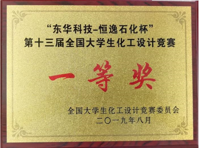 2019年“东华科技-恒逸石化杯”第十三届全国大学生化工设计竞赛总决赛近日在山西太原中北大学举办。合肥学院化工工程师之家两支队伍均获奖,其中“风雨兼程”团队获得全国一等奖,“有酯者”团队获得全国二等奖。这是我校参赛10年来第5次进入全国总决赛,荣获第4个全国一等奖。