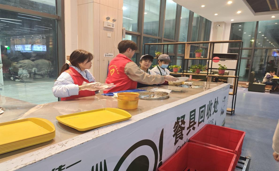 尽管活动过程中有些忙碌,但志愿者们始终保持着热情的态度,无私奉献的精神,帮助着就餐人员和食堂工作人员,用真诚的服务传递温暖。