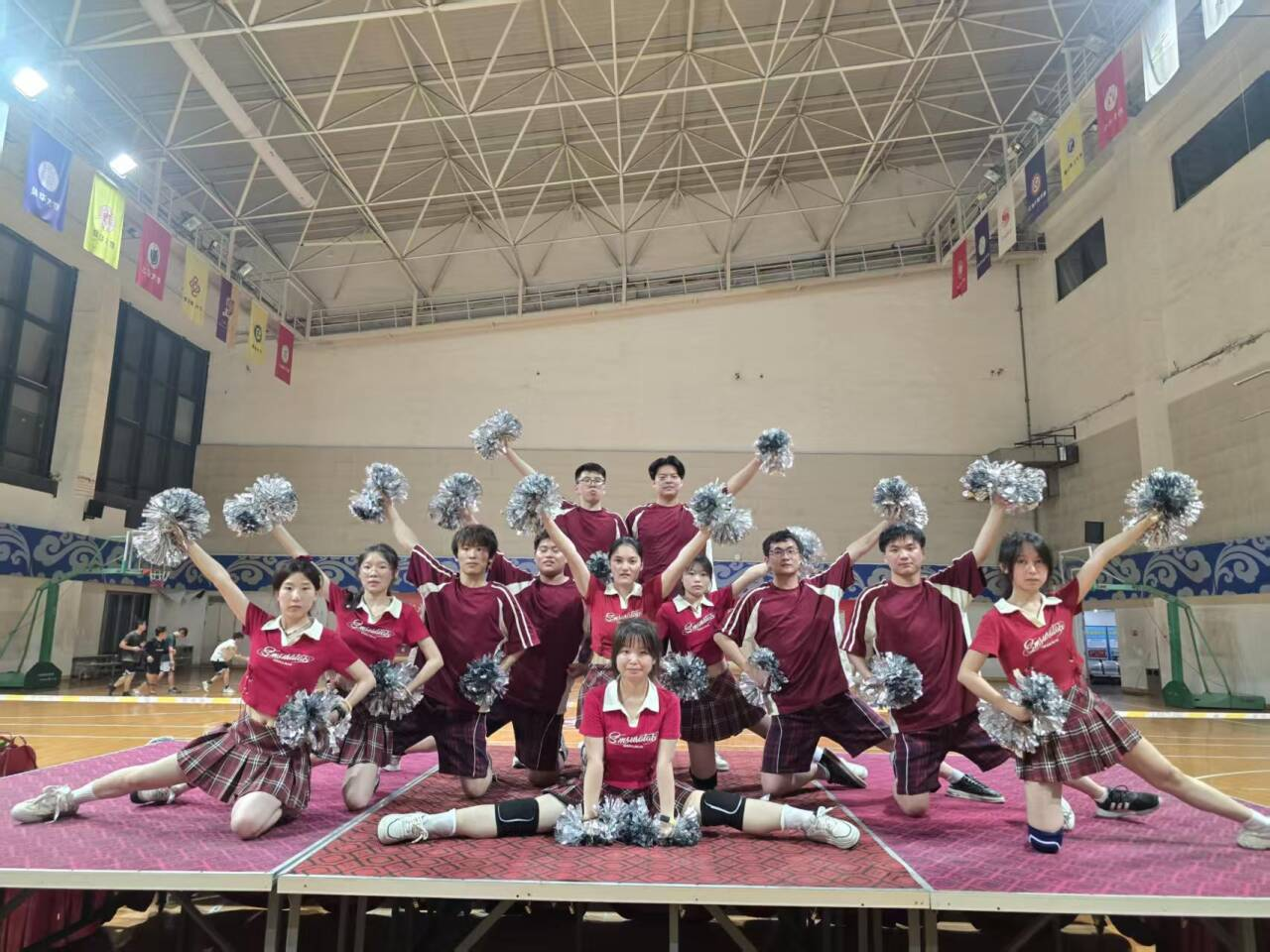 比赛当日,体育馆内气氛热烈,座无虚席。各院系代表队纷纷登场,展现出青春的活力与团队的风采。当材化学院的火舞啦啦队身着轻快活泼的格子裙队服闪亮登场时,瞬间吸引了全场的目光。随着欢快的音乐响起,队员们以灵动的步伐、俏皮的拍手动作和流畅的旋转,配合着不断变换的队形,将青春的朝气与热情尽情释放,活力洒满整个赛场。