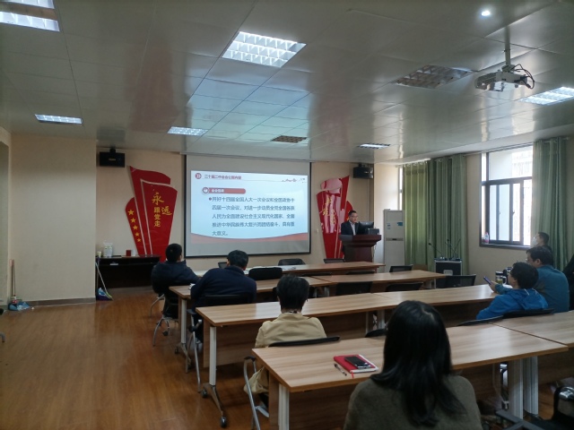3月7日下午,材化学院党委中心组组织专题学习党的二十届二中全会精神学习研讨会,会议由学院党委书记刘沛平主持,学院领导班子、支部书记和部分教工党员参加了本次会议。