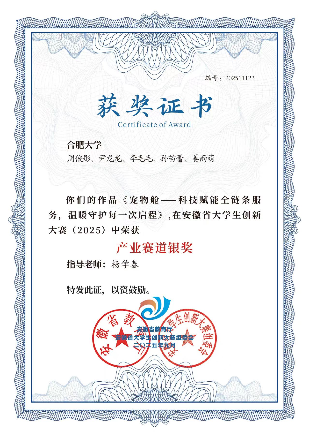中心教师指导学生在安徽省大学生创新大赛(2025年)中荣获产业赛道银奖