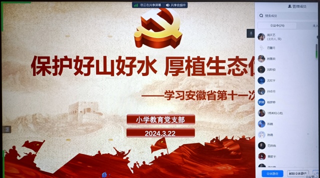 为贯彻学习习近平生态文明思想,落实安徽省第十一次党代会关于生态文明建设的战略部署,为绿色发展、美丽中国建设贡献青年力量,小教党支部于3月22日晚开展了以“保护好山好水 厚植生态优势”为主题的党日活动。考虑到大部分大四党员仍未返校,此次活动通过腾讯会议的形式在线上开展。
