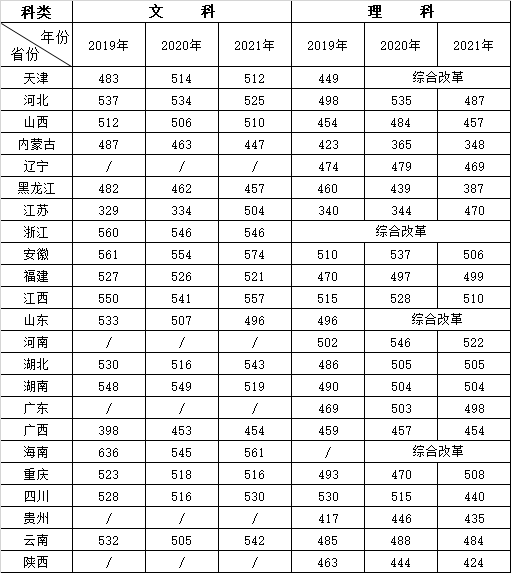 合肥学院近三年各省非艺术类专业最低录取分数线(2019-2021年)