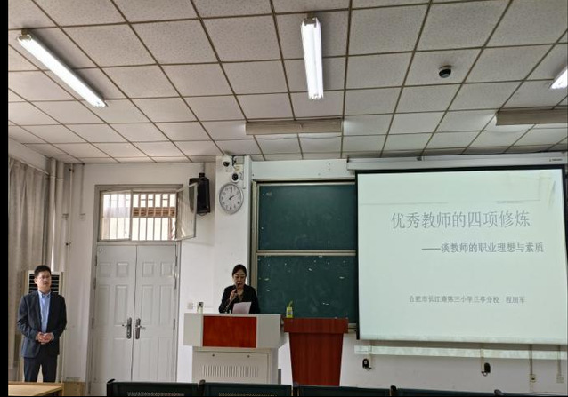0月28日下午,教育学院邀请校友代表程朋军返回母校参加学院优秀校友交流会,交流会由院长江芳教授主持。学院师生代表出席了此次交流会。 首先,院长江芳教授介绍了优秀校友代表程朋军的基本情况,程朋军是合肥市长江路第三小学兰亭分校校长,并代表学院对程朋军出席此次交流会表示热烈的欢迎,也希望程朋军校长对学院建设和发展提出宝贵建议,共同将学院建设得更加美好。 交流过程中,程朋军校长作为优秀校友的代表结合自身经历总结出了要当好一名优秀教师,要做到“心中有爱,手中有法,行中有为,热爱阅读”,即一名优秀的老师要有强烈的社会责任感,有胜任教育教学的能力,有自己独到的社会哲学,有渊博的知识积累。随后,程朋军校长又提出了三项大学生规划的建议:一要学好专业知识,二要积极参加实践活动,三要把事情尽量做到最好。交流会最后,程朋军校长向同学们展示了自身的人生感悟语录,同时表达了对同学们的美好祝福。 通过此次校友交流会,加深了同学们对教育专业的了解,对我院人才未来培养和发展有指导意义,相信在优秀校友的支持和帮助下,在各位同学的努力下,教育学院的发展将会更上一层楼。(教育学院记者 荣岚 任心怡)