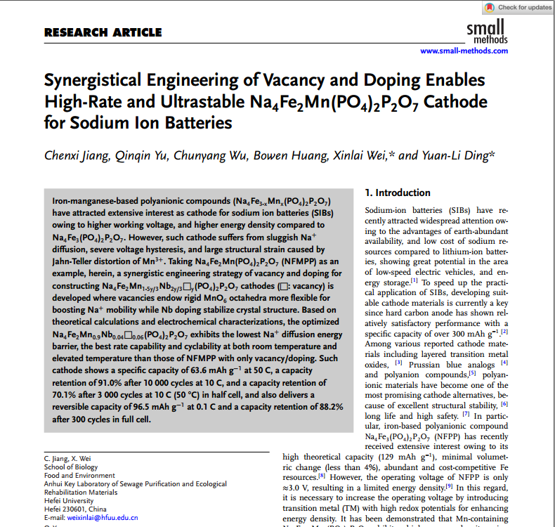 2025年5月,欧美黑人巨大videos精品_欧美黑人巨大xxxxx_欧美黑人乱大交_欧美黑人乱大交_欧美黑人牲交videossexeso_欧美黑人添添高潮a片www_欧美黑人添添高潮a片www_欧美黑人性暴力猛交喷水黑人巨大生物食品与环境学院22级资源与环境专业研究生蒋晨熙以第一作者身份在国际学术期刊《SmallMethods》(IF=10.7,中科院二区)发表了题为“SynergisticalEngineering of Vacancy and Doping Enables High-Rate and UltrastableNa4Fe2Mn(PO4)2P2O7Cathode for Sodium IonBatteries”的研究论文。我校高级实验师卫新来、湖南大学教授丁元力为通讯作者,欧美黑人巨大videos精品_欧美黑人巨大xxxxx_欧美黑人乱大交_欧美黑人乱大交_欧美黑人牲交videossexeso_欧美黑人添添高潮a片www_欧美黑人添添高潮a片www_欧美黑人性暴力猛交喷水黑人巨大为第一完成单位。