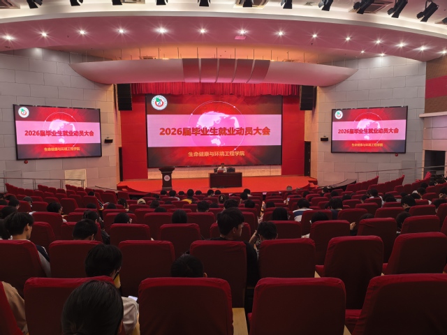 为助力2026届毕业生把握毕业要求、明确就业方向,10月17日下午2:30,生命健康与环境工程学院在图书馆A报告厅举办2026届毕业生就业动员大会。生环学院党委书记杨红、党委副书记姚蓓蓓、副院长笪春年、校党委人民武装部国防动员科科长郑国平、全体毕业班辅导员以及2026届本科生和研究生参与本次会议,会议由姚蓓蓓主持。本次大会围绕“毕业准备、就业指引”两大核心,为大家送上“毕业就业指南”,希望能为大家的未来规划提供切实帮助。