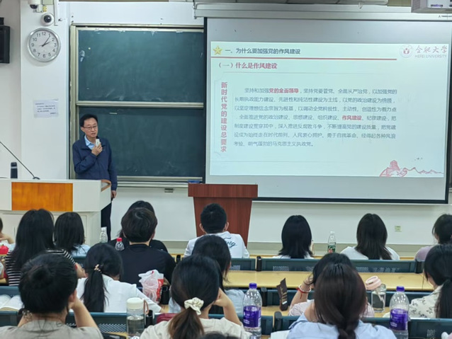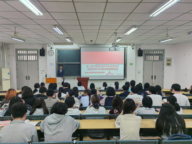 吴功福重点从为什么要加强党的作风建设、深入领会习近平总书记关于加强党的作风建设的重要内涵和精神实质、加强党的作风建设的切入口和动员令:八项规定何以改变中国、作风建设永远在路上等四个方面展开授课。通过理论阐释与案例教学,视频、图片等元素的融入,吴功福对于习近平总书记关于加强党的作风建设的重要论述作了系统、深入的阐述与讲解,引发同学们强烈的思想共鸣。