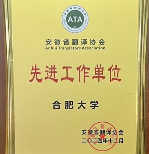 12月7日,安徽省翻译协会2024年年会暨AI翻译技术论坛在合肥举行,我校作为安徽省翻译协会常务理事单位,凭借过去一年在翻译领域所作出的突出贡献,荣获“先进工作单位”称号。