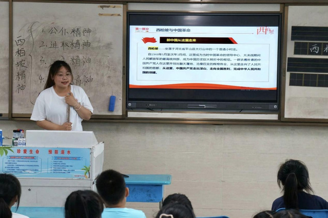 7月10日上午九点,“语”你同行乡村振兴团于高店镇中心学校举办了一场意义非凡的西柏坡精神宣讲活动,旨在通过深入学习和宣传西柏坡精神,激发少年儿童的爱国热情和责任意识。活动中,来自不同年级的学生齐聚一堂,共同回顾西柏坡对中国革命历史的重要意义,探讨如何在当下弘扬和感悟这一精神。