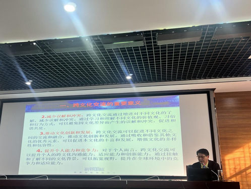 12月20日下午外国语学院于一期六栋报告厅组织开展了大学生劳动教育实践讲座“跨文化交流之国际礼仪”本次讲座由中国教育国际交流协会AFS国际文化交流项目指导委员会专家、安徽省皖教国际教育交流中心主任秋阳老师主讲,外国语学院院长叶旭萍、副院长李洁、日语专业负责人刘亚钰、德语专业教师蔡欣怡、团委副书记张正华以及2023级全体学生参加了此次活动。