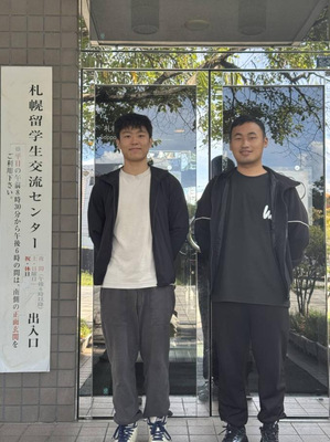 2023级日语专业吴佳霖、赵文锐同学目前正在札幌大学交流,通过视频在线向院领导及同学们汇报了正在札幌大学的课程设置、专业学习及课余生活情况,谈了谈对日本文化的直观感受。