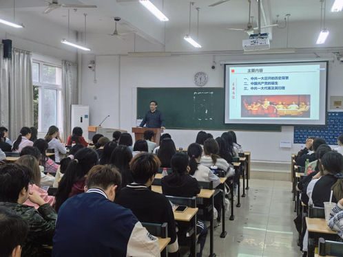 授课过程中,罗老师结合丰富的历史资料和鲜为人知的故事,使学员们更加直观地感受到了那段波澜壮阔的历史。详细介绍了中共一大的召开过程、参与代表以及所通过的重要决议深入浅出地分析了当时的国内外形势,以及这些因素如何影响了会议的走向和结果。随后,罗老师重点讲述了中共一大代表们在革命征程中的不同选择和命运,既有引领中国改天换地、从“石库门”走上“天安门”的毛泽东和他的战友董必武,有英勇牺牲的陈潭秋、何叔衡、王尽美、邓恩铭,有意见不合而“退党”的李达、李汉俊、刘仁静,也有叛变革命被党开除的张国焘、陈公博、周佛海。通过对这些代表们个人命运的探讨,罗老师引导学员们思考信仰的力量和坚定的革命意志对于一个共产党员的重要性。最后,他指出,从一大到二十大,百年大党,历经风雨,巍然屹立,功勋卓越。中国共产党的诞生是一种必然,是历史的选择,更是人民的选择。