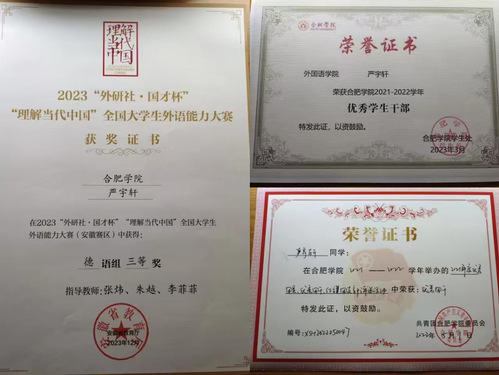 严宇轩正式决定向西外进发是在大三上学期。因为老师的推荐,他担任了德语朗诵比赛的主持人,这使他对自己的德语能力更加自信,口语水平也得到了进一步的提升。通过这次锻炼,严宇轩感到西安外国语大学并不是一座难以翻越的高山,而是可以凭借努力到达的地方,于是他更加坚定了自己想要考上西外德语专业的想法。