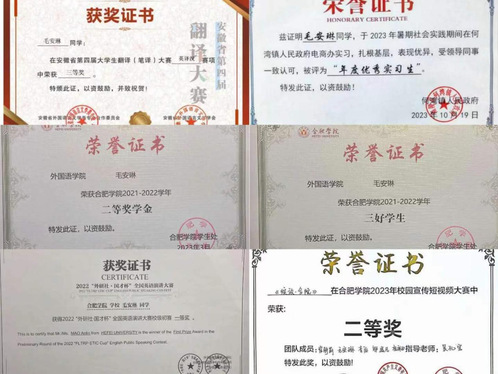 “无冥冥之志者,无昭昭之明;无惛惛之事者,无赫赫之功。”这句古言强调了志向和专心的重要性,鼓励人们努力追求梦想、采取行动。“合肥市最美大学生”、2021级英语专业的毛安琳同学,入校以来不仅学业成绩名列前茅,更是积极参与各项比赛、志愿活动,在个人能力得到提升的同时,也给学院增添了光彩。