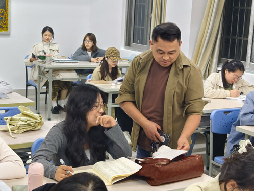 为了持续提高我院学生学习主动性和积极性,我院始终坚持推进晨读晚自习制度。10月10日晚18:30与10月11日早晨,外国语学院学工办主任李发俊老师与辅导员王雨濛走入早晚自习教室进行检查指导。