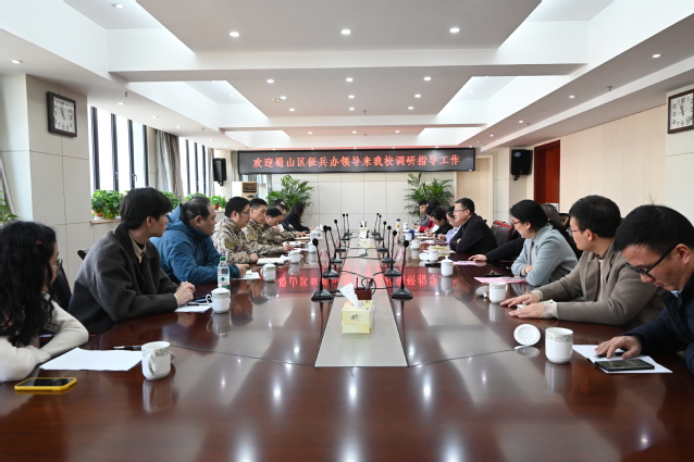 12月6日,蜀山区区委常委、区征兵办主任、区人武部部长唐泊一行4人来校检查调研,我校学工部人武部部长、学生处处长丁增云,城市建设与交通学院党委书记张永军,先进制造工程学院党委副书记蔡灵美,二级学院征兵工作联络员全程陪同调研。