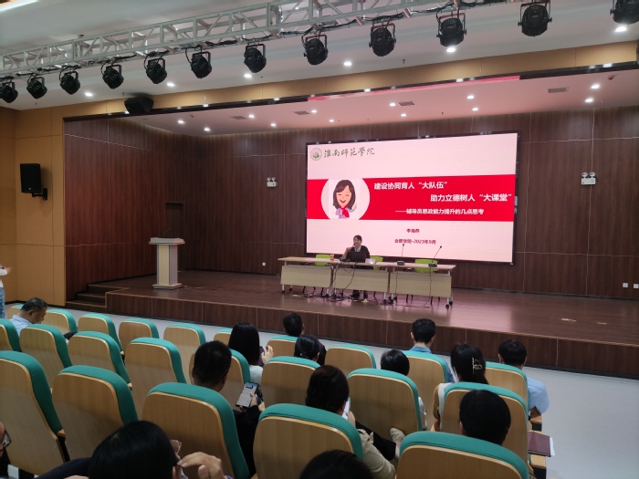 9月22日,我校在设计学院报告厅举办辅导员之家第三十三期辅导员沙龙。沙龙主题为聚焦辅导员主责主业,提升辅导员素质能力。第十二届全国辅导员年度人物、淮南师范学院李海燕老师受邀作主题讲座,设计学院党委书记鲁先瑾、党委学工部副部长张应杰、各二级学院党委副书记及全体辅导员参加会议,沙龙由辅导员之家理事会会长章云冉主持。