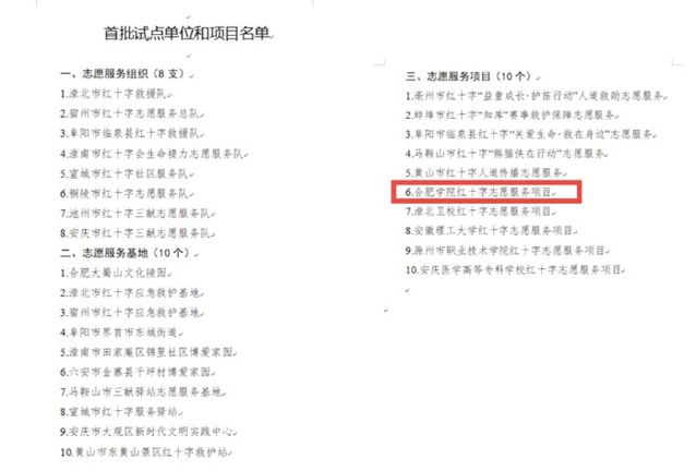 近日,安徽省红十字会公布了2021年志愿服务品牌建设试点名单,名单包含8支志愿服务队、10个志愿服务基地和10个志愿服务项目。我校大学生红十字会志愿服务项目成功入选志愿服务品牌项目。