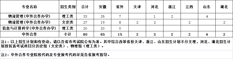 合肥学院2023年中外合作专业分省计划一览表(安徽省院校报考代码为9110)