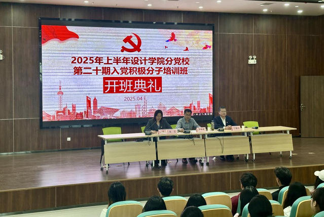 4月8日,设计学院分党校入党积极分子培训班举行开班典礼,党委学生工作部、党委人民武装部、学生处部(处)长丁增云、设计学院党委书记鲁先瑾、党委副书记吴云出席开班典礼,来自不同专业的60余名师生入党积极分子、全体学生党员参加。