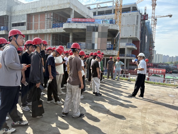 2025年9月16日上午,智能建造与交通工程学院2022级土木工程专业本科生在指导老师带领下,赴海恒国际体验式商业街区项目进行生产实习现场教学活动。