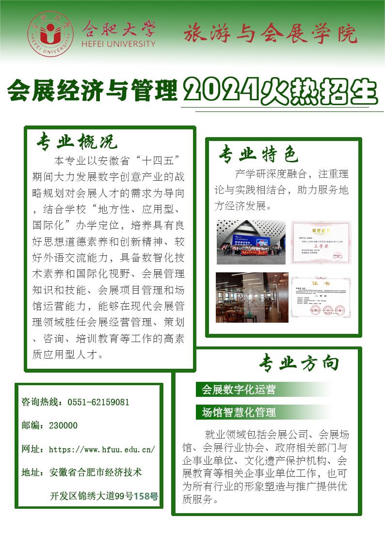 会展经济与管理(本科)                   咨询电话:0551-62159081