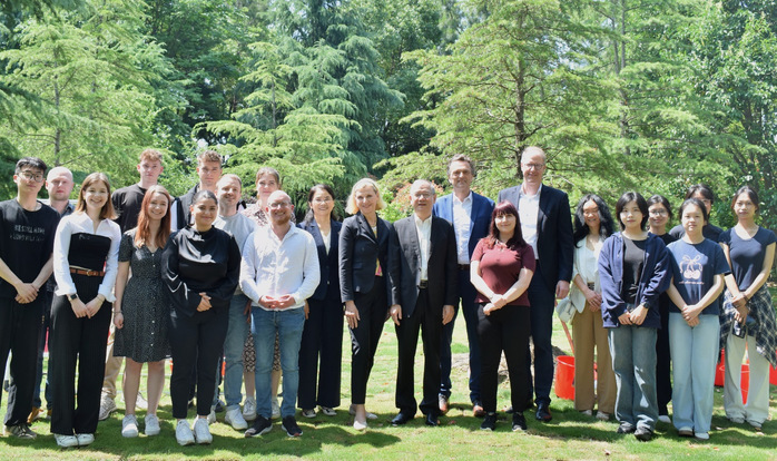 会后,代表团参观了学校中德合作成果展,两校青年学生开展交流讨论,并互赠礼物表达情谊。王其东同安德里亚斯•贝尔特拉姆共同种下常青树,代表两校合作蓬勃发展。